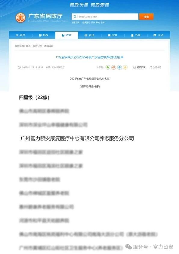 近日,2025年广东省星级养老机构评定结果正式揭晓,富力颐安·广州国际颐养社区首次参评便荣获四星级养老机构称号,为养老机构参与首评可获得的最高评级,彰显其专业康养服务硬实力。